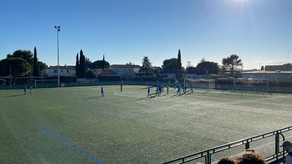 Après un premier quart d'heure équilibré, les verts se font surprendre à cause d'une trop grande passivité. En effet, suite à une première frappe Noah Raveyre s'interpose mais les sudistes en veulent davantage et sont les premiers sur le ballon repoussé pour finir. 1à0 pour Castelnau-le-Crès ! Ce but aurait du avoir le mérite de réveiller les verts, il n'en fut rien. Au contraire, les verts encaissent un second but dans la foulée. Le coup franc adverse prend la direction de la lucarne de Raveyre. 2-0 ! Le début de match ligérien est catastrophique et ne s'améliorera pas jusqu'à la mi-temps !