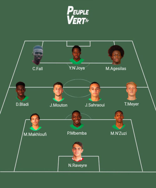 Les garçons de Dogon vont revenir dans le match juste avant la mi-temps. Malgré plusieurs opportunités où les stéphanois font preuve de maladresse c'est sur une des ultimes occasions que cela va enfin sourire. Cheikh Fall de la tête va réduire le score. Il inscrit son second but en trois matchs après celui contre l'OM. 2-1 pour les monégasques à la pause d'un match où les verts sont dominés dans le cœur du jeu.