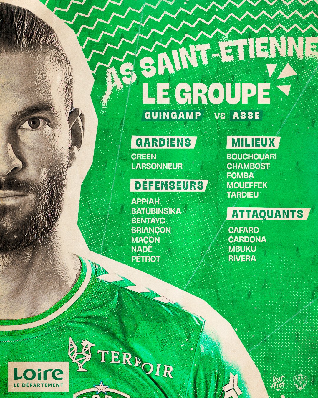L'ASSE se déplace en Bretagne ce week-end. Les Verts affronteront samedi soir l'En Avant Guingamp pour le compte de la 36ᵉ journée de Ligue 2 BKT. Olivier Dall'Oglio vient de communiquer le groupe retenu pour cette rencontre.