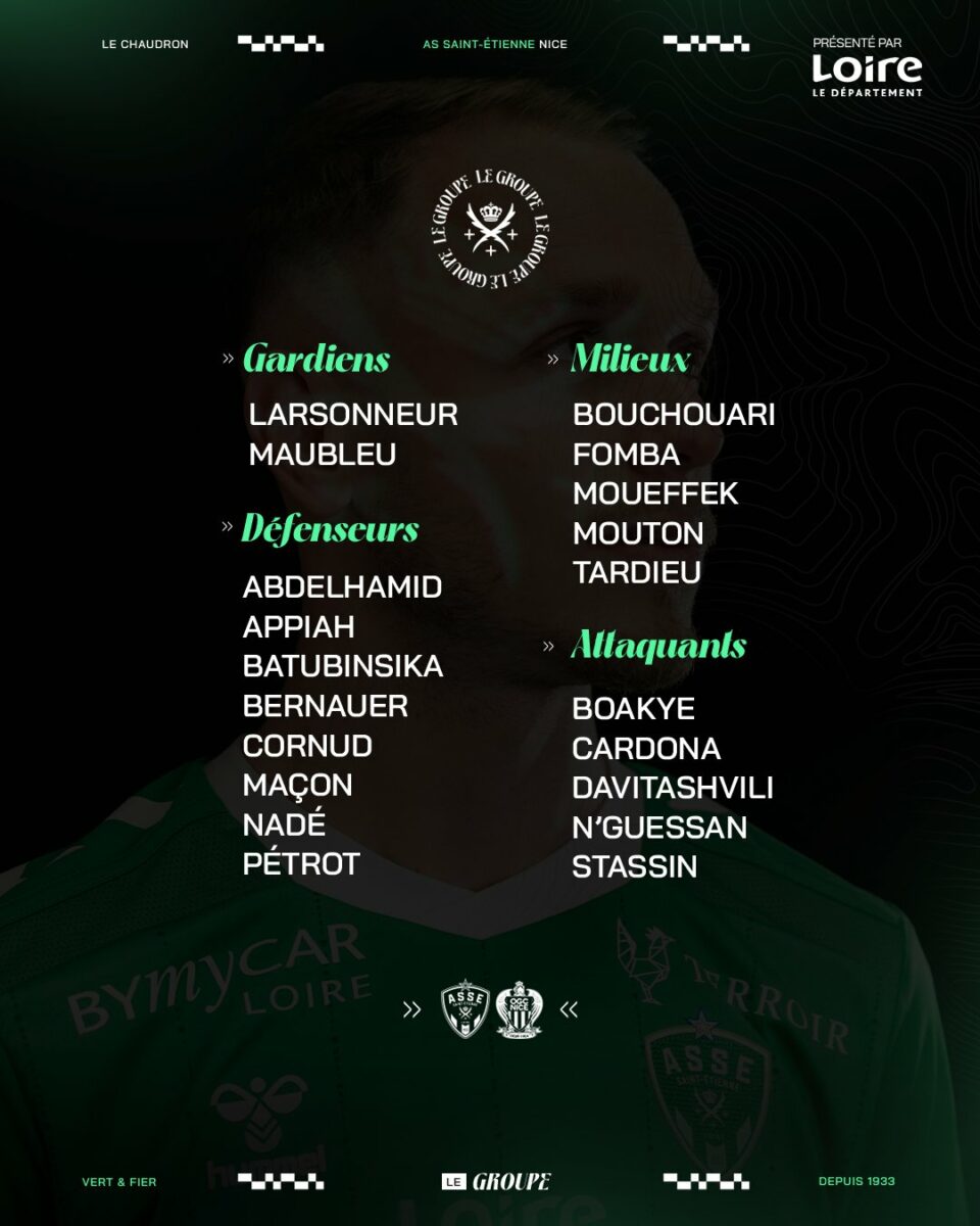 Bonne nouvelle pour les Verts : Dennis Appiah, qui était en phase de reprise, est désormais opérationnel. Horneland aura ainsi l’embarras du choix sur les ailes avec Yvann Maçon, Léo Pétrot, Pierre Cornud et Appiah. En défense centrale, plusieurs options sont également disponibles avec Dylan Batubinsika, Mickaël Nadé, Bernauer, Abdelhamid et Briançon.