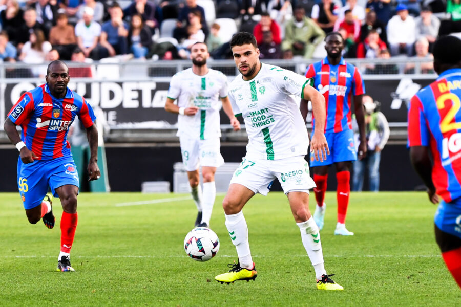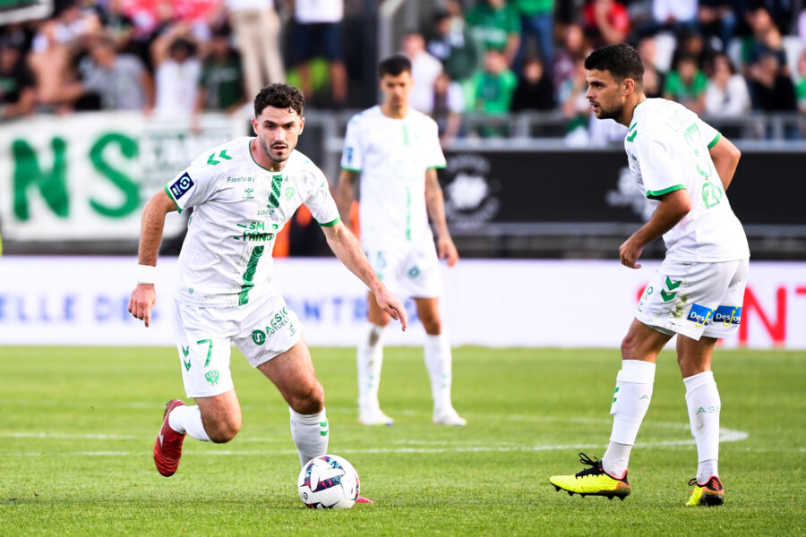 37 Louis MOUTON (asse) - 07 Thomas MONCONDUIT (asse) during the Ligue 2 BKT match between Amiens and AS Saint Etienne at Stade de la Licorne on October 22, 2022 in Amiens, France. (Photo by Loic Baratoux/FEP/Icon Sport) - Photo by Icon sport