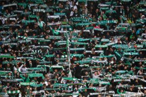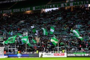 Saint Etienne fans during the Ligue 1 match between Saint Etienne and Toulouse at Stade Geoffroy-Guichard on April 28, 2019 in Saint-Etienne, France. (Photo by Romain Biard/Icon Sport)