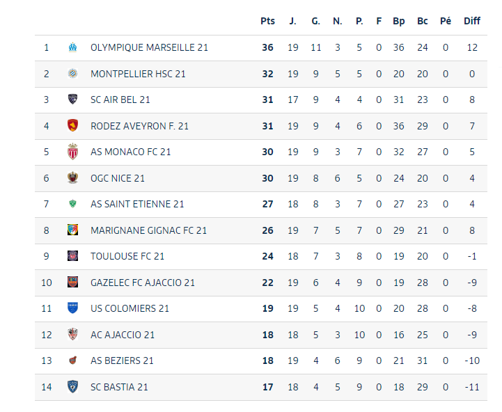 Le classement (à ajouter les 3 points pour l'ASSE)