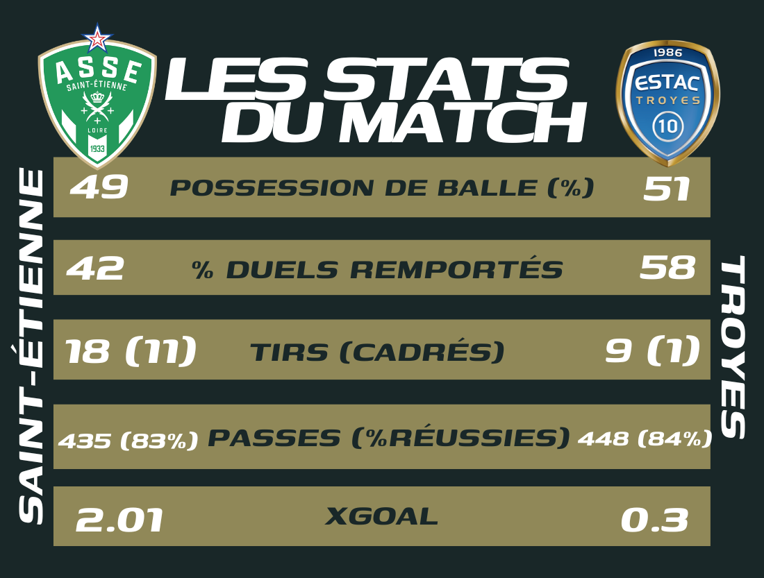 L'ASSE s'est brillamment imposée face à l'ESTAC hier soir. Une des rares rencontres dominées de la tête et des épaules par les stéphanois. Retour sur les chiffres de la rencontre.