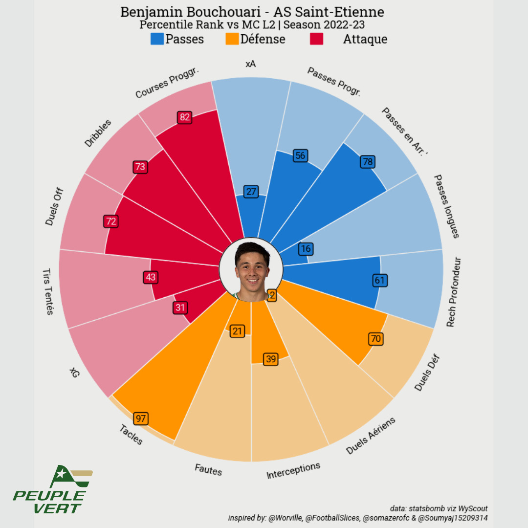 Dit autrement, Benjamin Bouchouari s'est particulièrement distingué par ses tacles, ses courses progressives avec ballon aux pieds et par ses dribbles / duels offensifs.