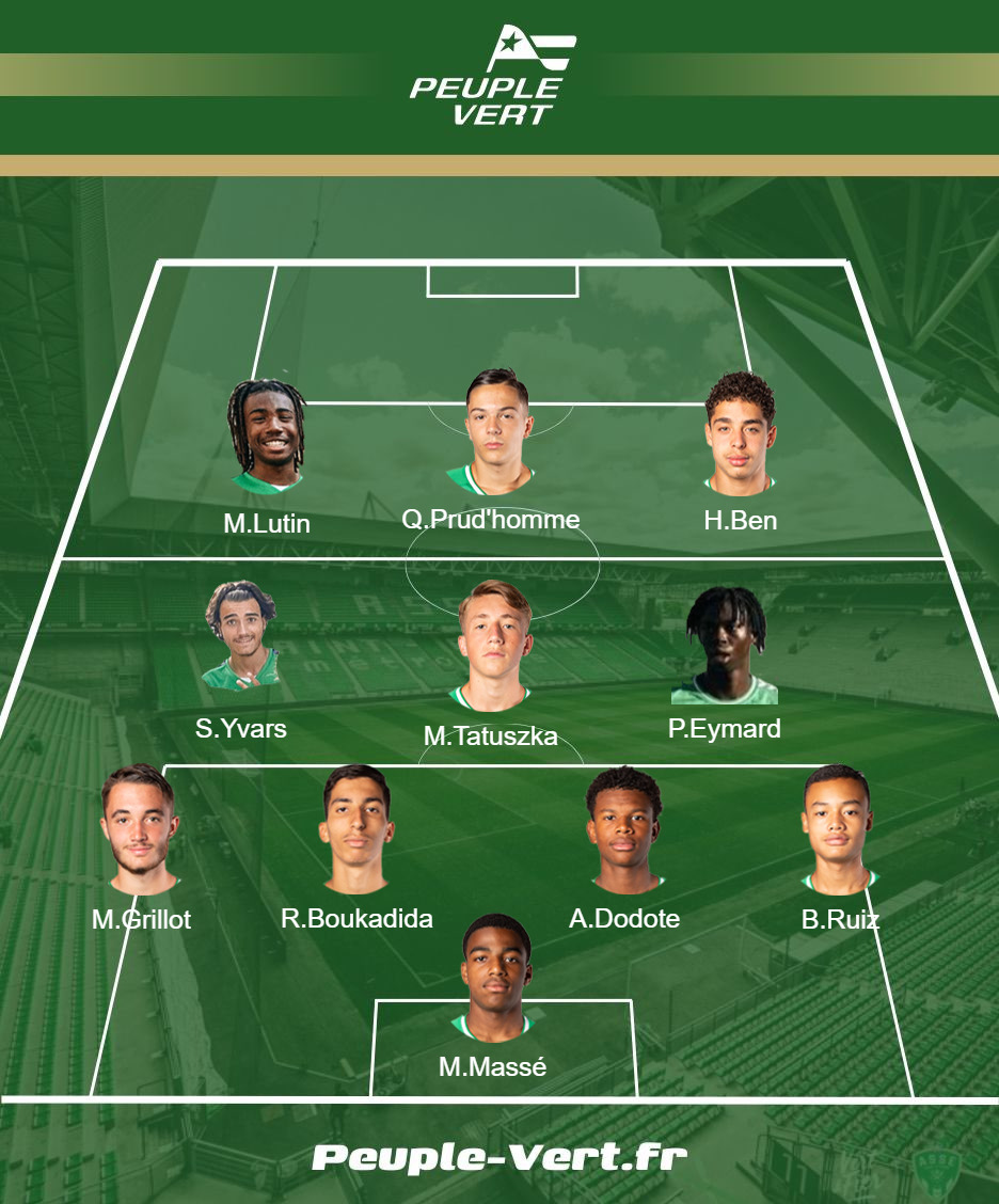 Après 30 minutes de jeu, les Verts mènent 3-1 ! Juste avant la mi-temps, l'AS Monaco va réduire le score par l'intermédiaire de Boujlifa. Vexés, les Verts vont eux aussi marquer avant la mi-temps toujours par l'intermédiaire de Lutin Zidee qui coupe un centre de Quentin Prud'homme ! 4-2 à la pause pour l'ASSE !