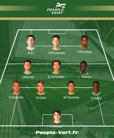Malheureusement, le match commence de la pire des manières. Sur un ballon dans le dos de la défense, l'attaquant adverse s'échappe et devance la sortie du portier stéphanois. Il centre finalement pour son coéquipier qui finit de la tête dans les buts vides. À peine après 10 minutes de jeu, les U19 sont cueillis à froid. Ils veulent réagir et inverser la tendance de ce match.