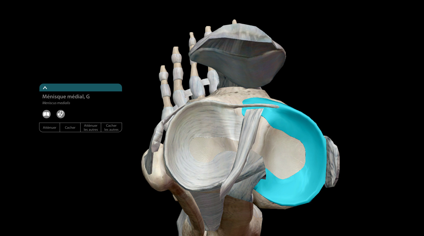 - Le ménisque interne ou médial situé à proximité de l'autre jambe