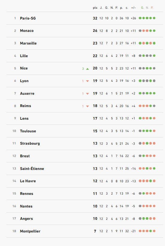 Classement de la ligue 1