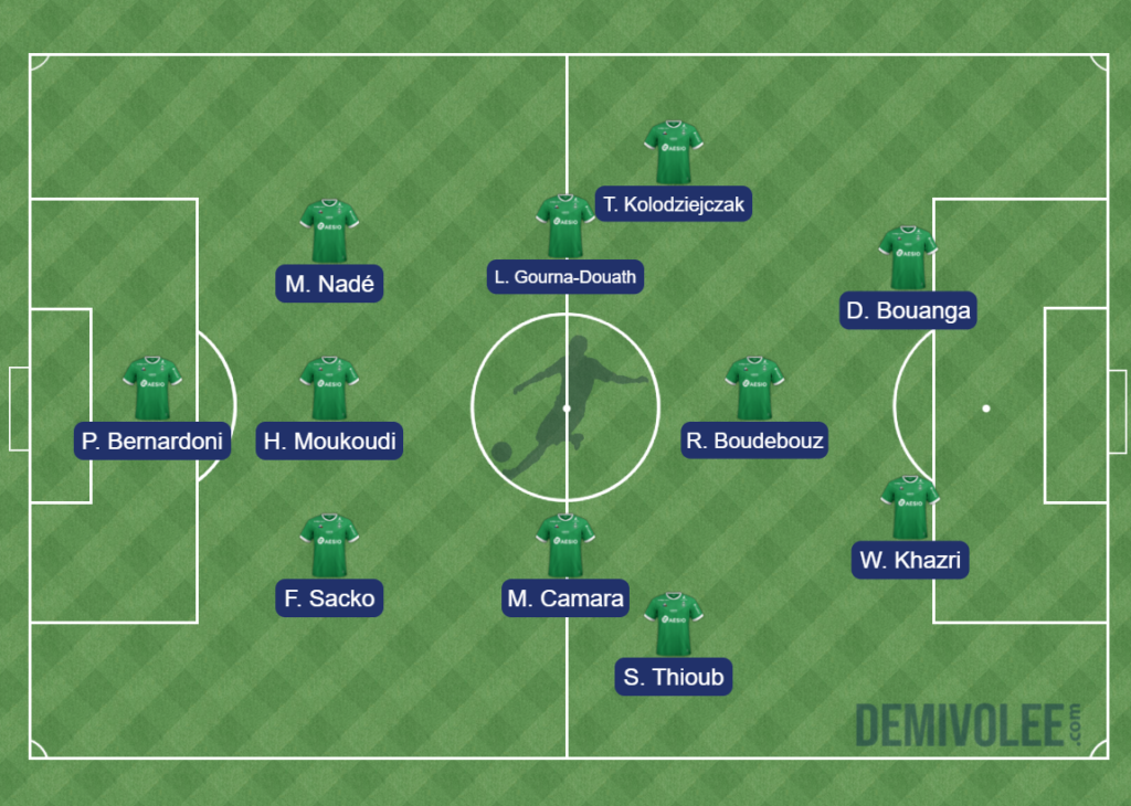 Devant, c'est l'homme en forme Denis Bouanga qui devrait être accompagné du retour de Wahbi Khazri. Pour animer le tout, Ryad Boudebouz jouera dans un rôle de meneur de jeu pour alimenter les deux buteurs stéphanois.