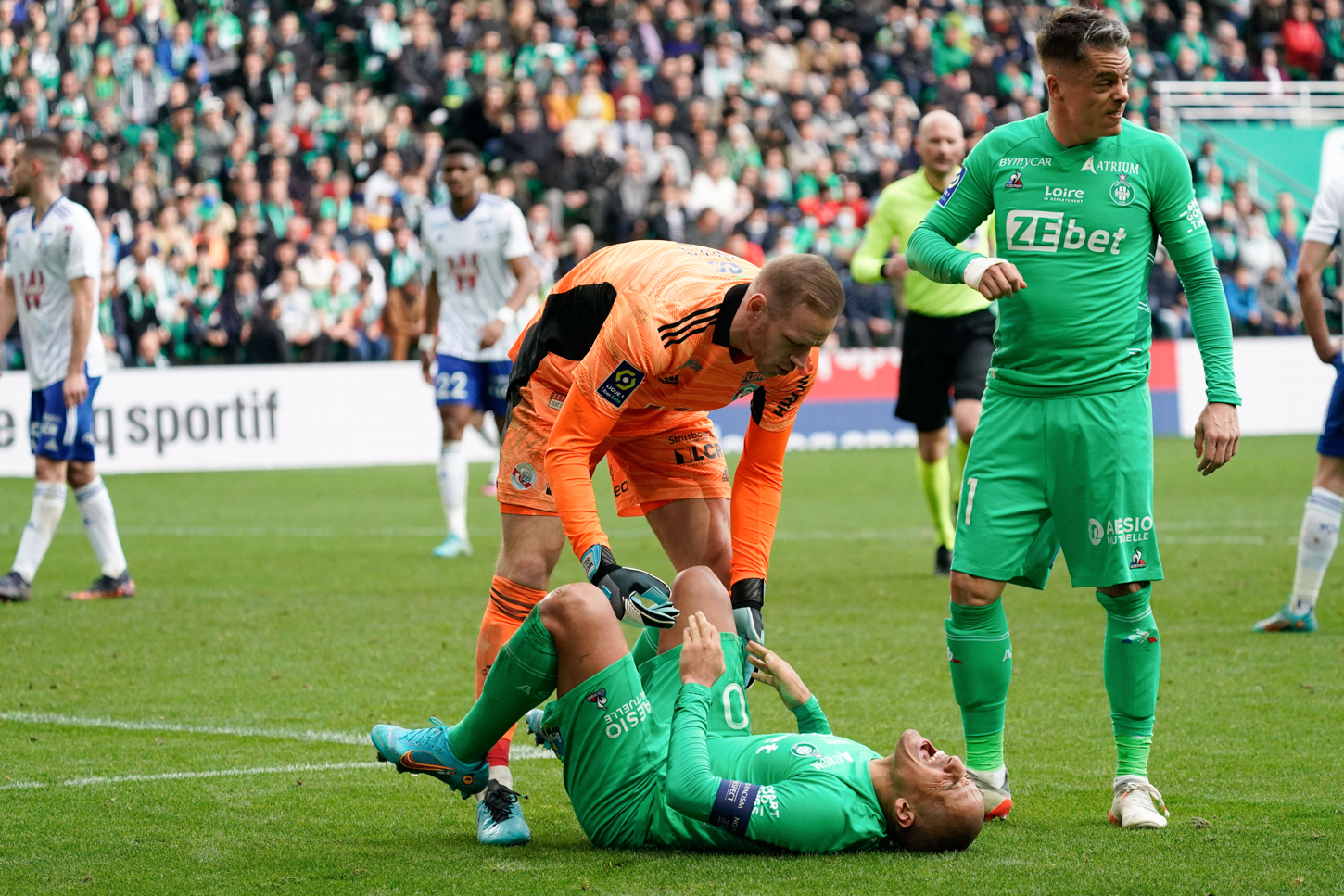 01 Matz SELS (rcsa) - 10 Wahbi KHAZRI (asse) during the Ligue 1 Uber Eats match between saint-Etienne and Strasbourg at Stade Geoffroy-Guichard on February 20, 2022 in Saint-Etienne, France. (Photo by Dave Winter/FEP/Icon Sport) - Photo by Icon sport