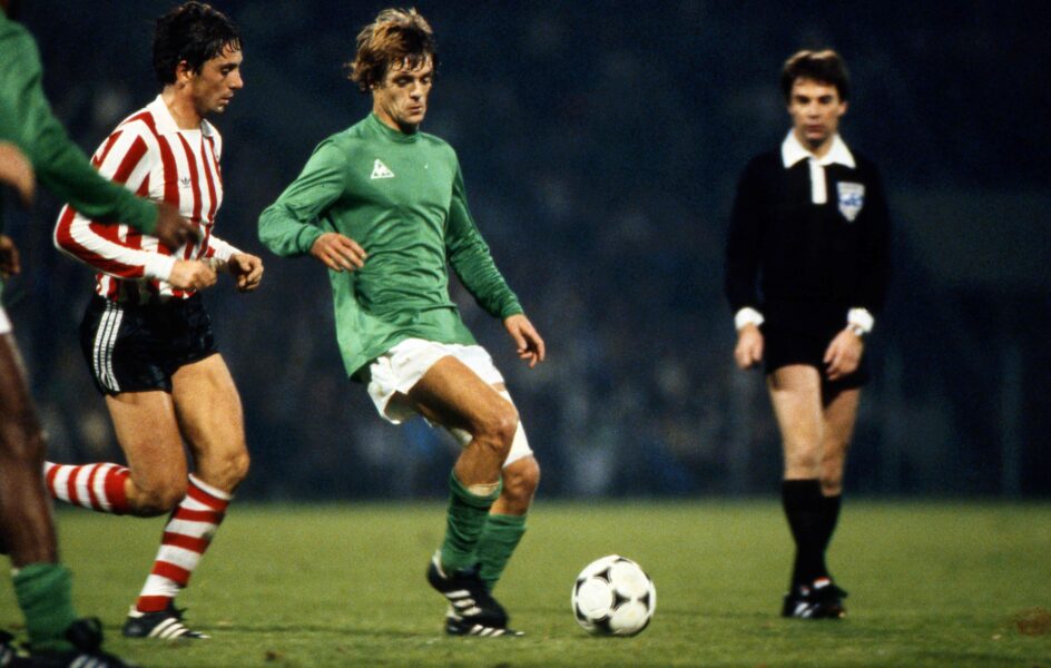 Johnny REP of Saint Etienne during the UEFA Cup match between Saint Etienne and Kuopion Palloseura at Stade Geoffroy-Guichard, Saint-Etienne, France on October 10th, 1980.