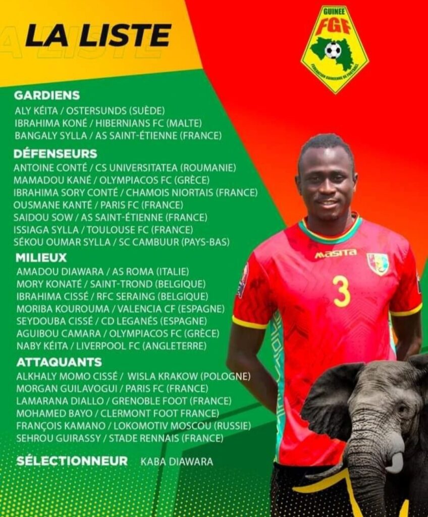 La Guinée va effectuer des matchs amicaux lors du mois de mars. Pour cela, le sélectionneur Kaba Diawara a donné la liste des 23 joueurs sélectionnés pour ce rassemblement. L'équipe compte deux stéphanois.